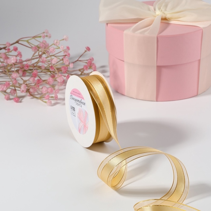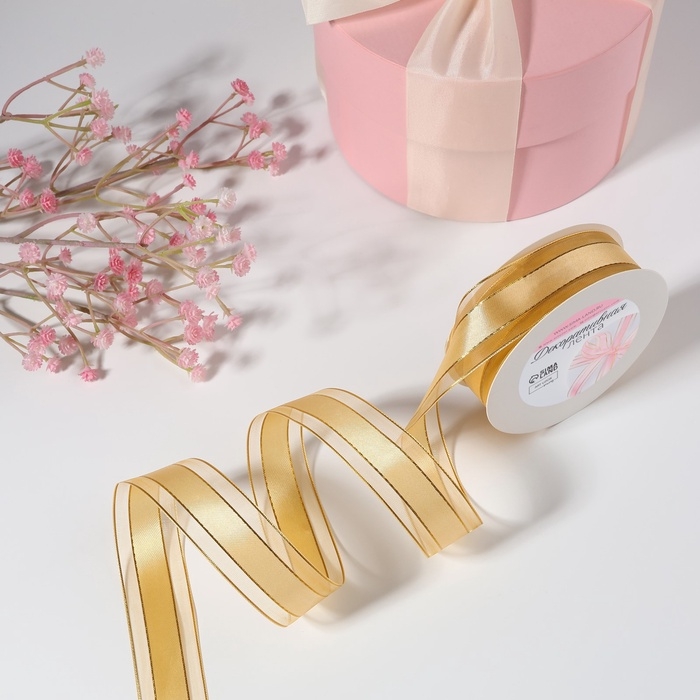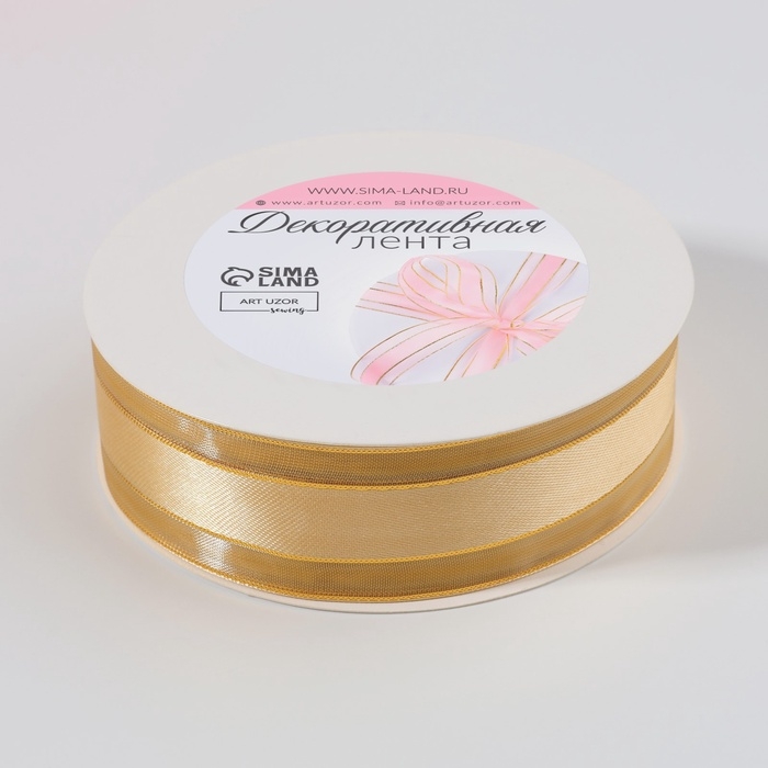 Лента декоративная, капроновая/атласная, с люрексом, 25 мм, 18 ± 1 м, цвет золотой