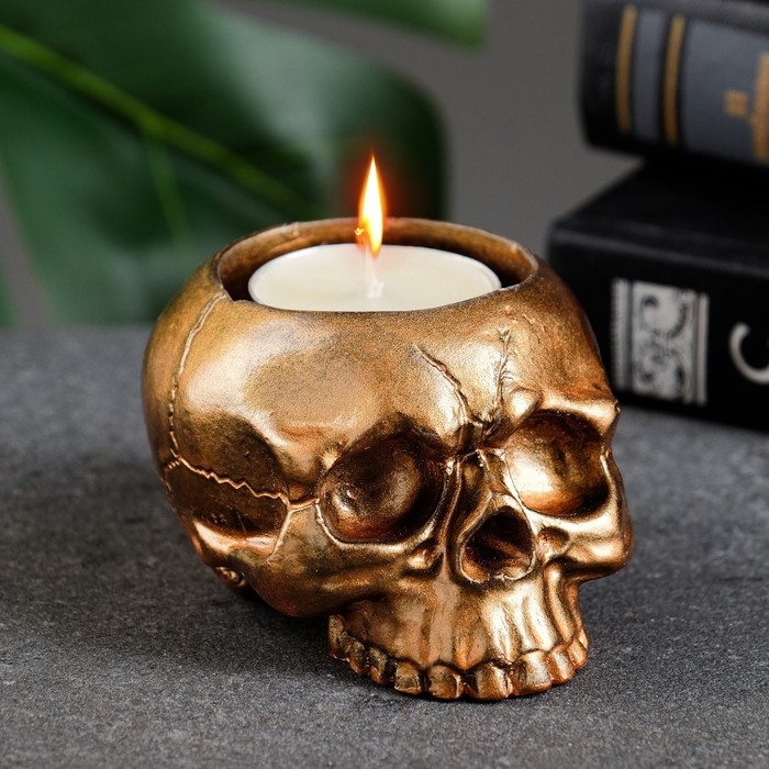 Подсвечник "Череп" бронза, 9х7х5см