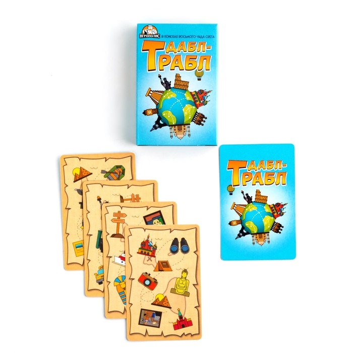 Настольная игра для компании детей и взрослых "Дабл-трабл. Чудеса света", 55 карточек