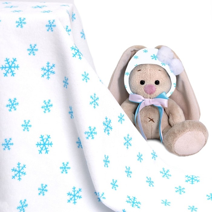 Отрез трикотажный для рукоделия, велюр, на белом фоне голубые снежинки, 45 х 50 см