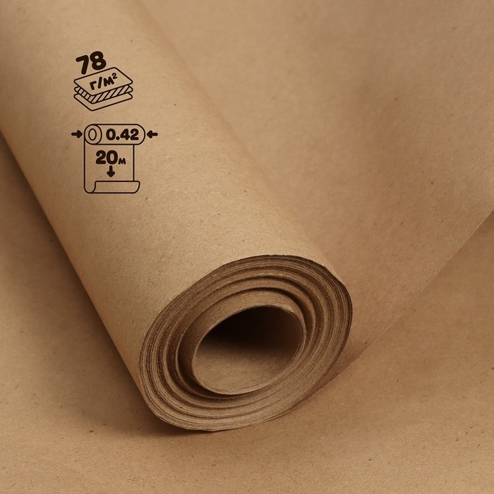 Крафт-бумага в рулоне, 420 мм x 20 м, плотность 78 г/м2, Марка А (Коммунар), Calligrata