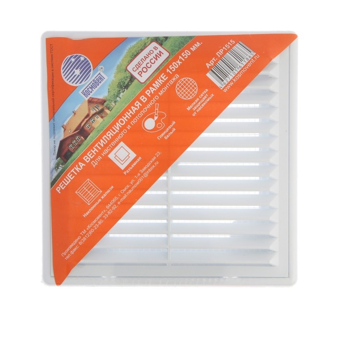 Решетка вентиляционная "КосмоВент" ЛР1515, 150 х 150 мм, с сеткой, разъемная