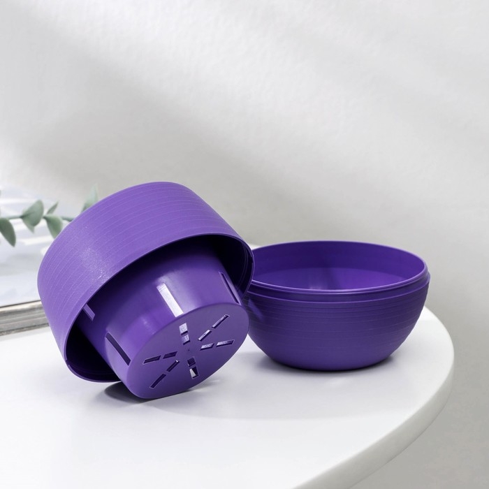 Горшок для цветов с поддоном «Япония», 125 мл, d=8 см, h=6,5 см, цвет фиолетовый