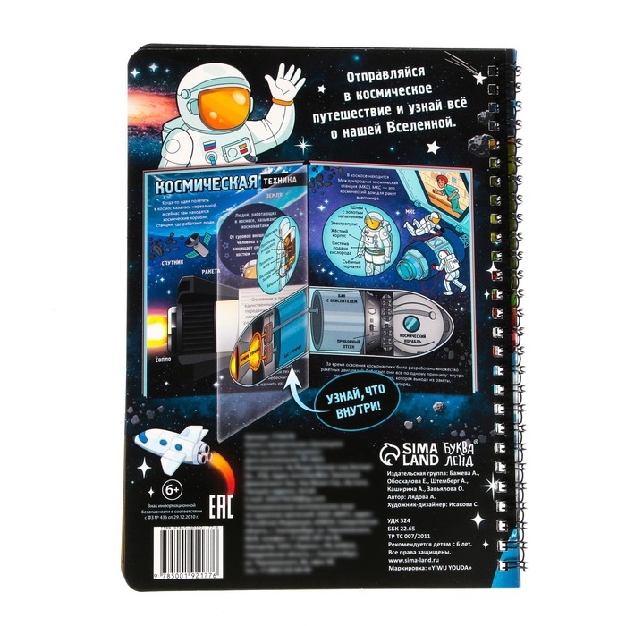 - На красочных страницах вы найдёте много интересных фактов о нашей планете и Солнечной системе, а также о величайших технических изобретениях, которые сделали возможным освоение космического пространства.