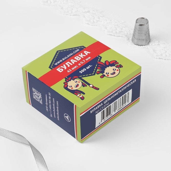 Булавки портновские, 43 мм, 500 шт, цвет серебряный