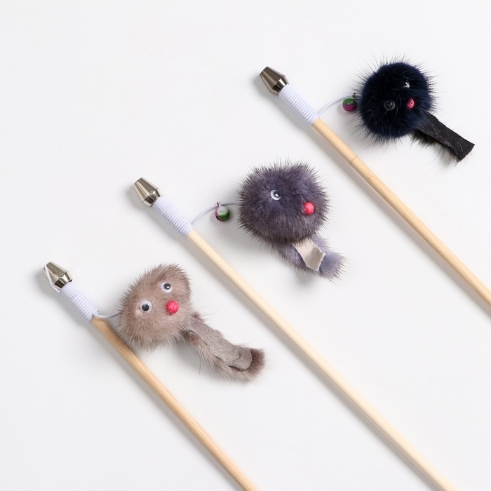 Дразнилка - удочка "Норковый зверек" на деревянной палочке, микс цветов