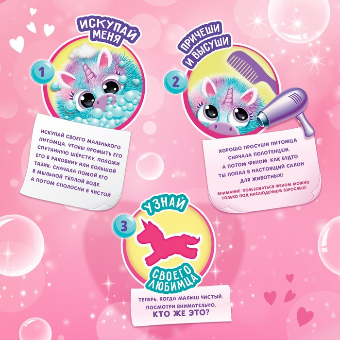 Эта игрушка-сюрприз развивает воображение ребёнка, мышление и моторику. Игра с питомцем прививает любовь к животным, обучает правилам ухода за ними.