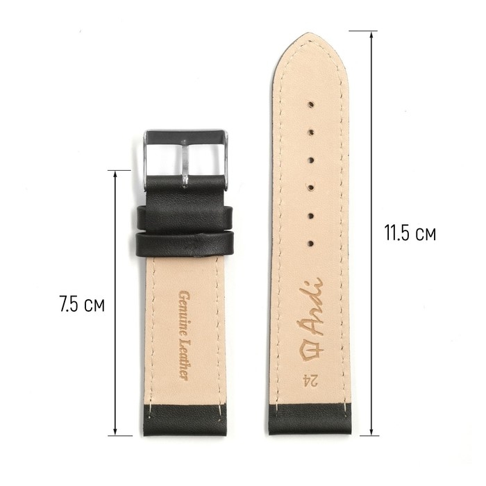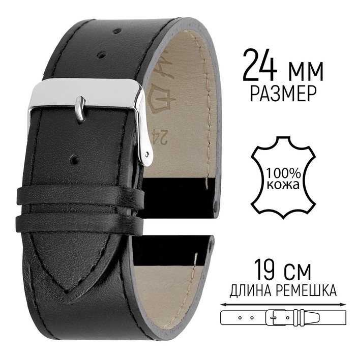 Ремешок для часов, 24 мм, запряжник 75 мм, горт 115 мм, натуральная кожа, черный