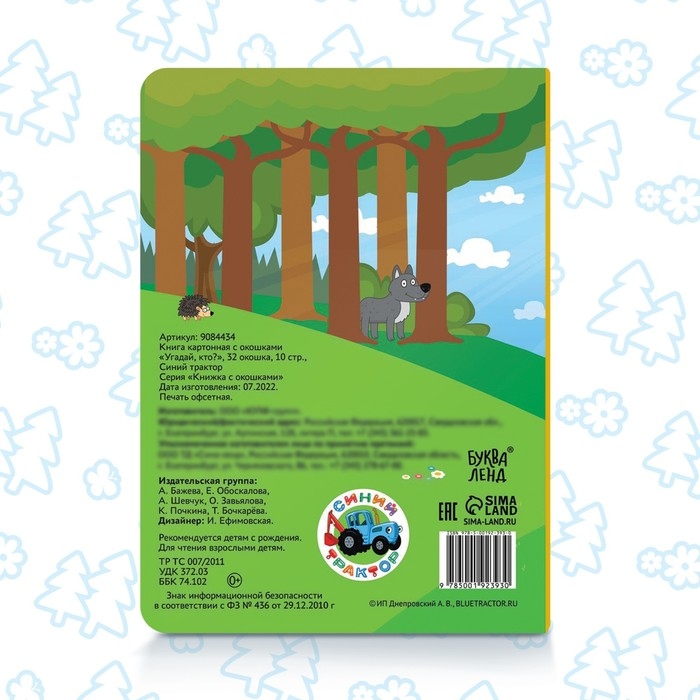 Книга картонная с окошками «Угадай, кто?», 32 окошка, 10 стр., Синий трактор