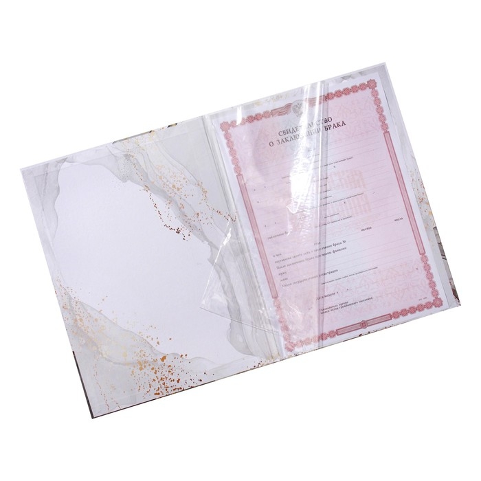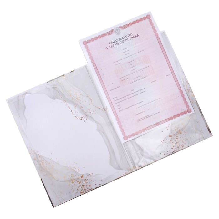 Обложка для свидетельства о заключении брака формата А4 станет лучшим обрамлением для вашего первого совместного документа. Красивая свадебная папка подчеркнёт всю торжественность бракосочетания, она будет напоминать вам о светлом дне свадьбы. В такой папке ваш семейный документ не помнётся, не испачкается и будет сохранять свою красоту всю жизнь. Оригинальный дизайн папки создаст отличное настроение новобрачным и станет хорошим презентом на свадьбу или её годовщину. Папка изготовлена ихз переплётного картона 1,25 мм. Формат обложки А4. Папка с файлом А4.