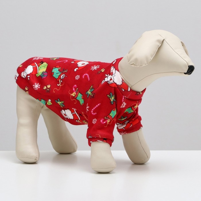 Новый год. Кофта новогодняя для животных "Подарки", размер M, красный (ДС 30, ОШ 26, ОГ 38 см)