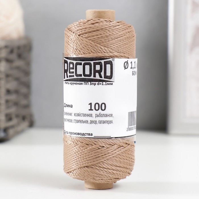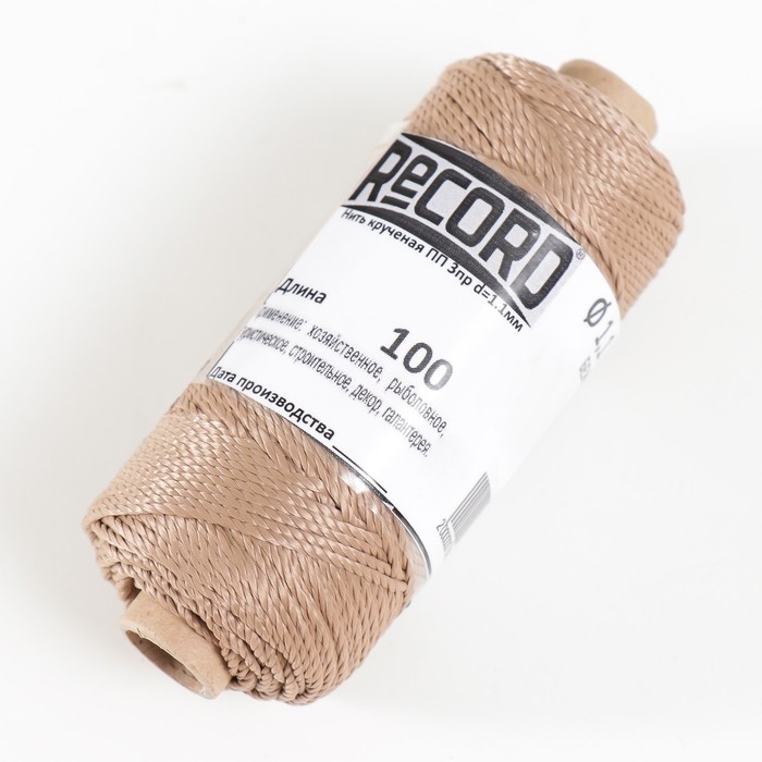 Нить кручёная 3-х прядная полипропиленовая, d=1.1 мм 100 м (бежевая) МИКС