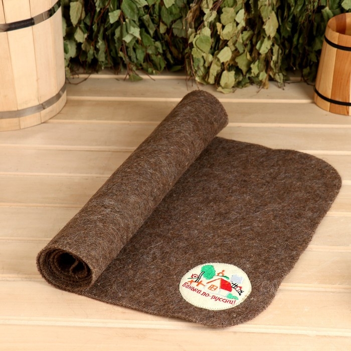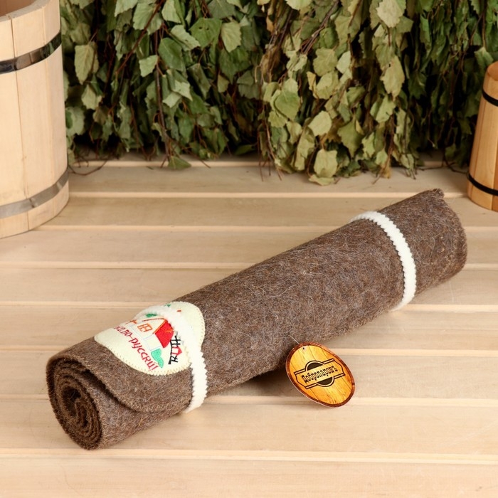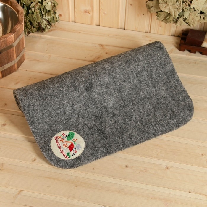 Лежак для бани темный с вышивкой "Банька по-русски" 150х50 см