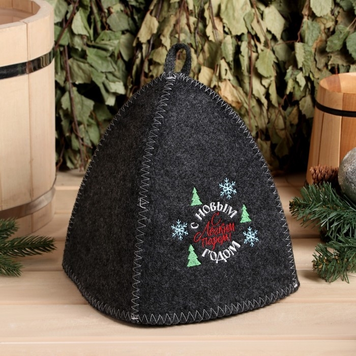 Новый год. Шапка для бани с вышивкой "С легким паром. С новым годом"