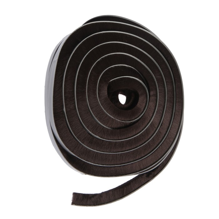 Уплотнитель щеточный самоклеящийся ТУНДРА, 9х15 мм, коричневый, 10 м.