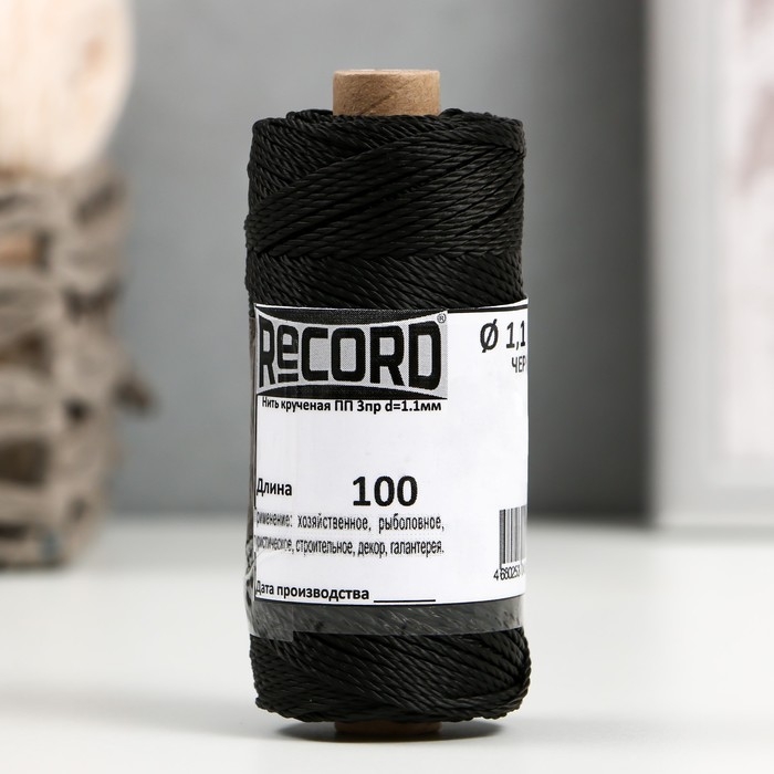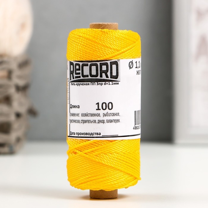 Нить кручёная ПП 3пр d=1,1 мм 100 м (крас.,белый, жел.,черн.,фиол.,набор 5 шт)