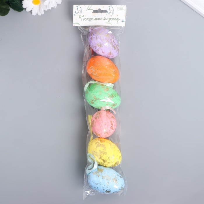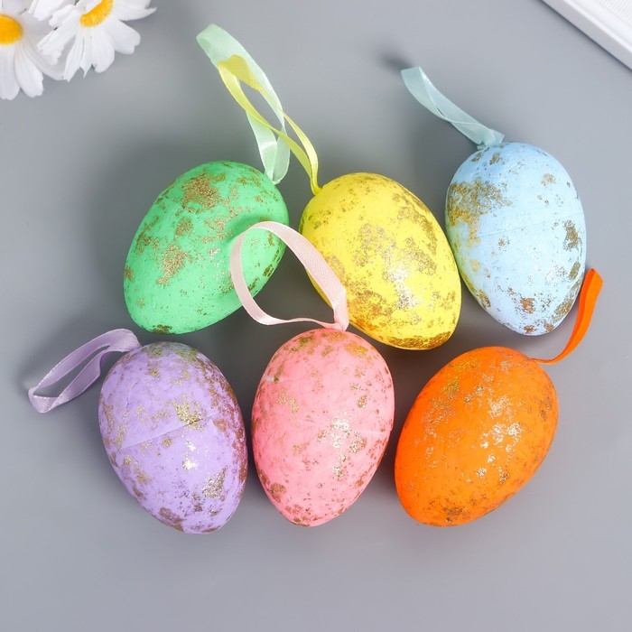 Декор пасхальный подвеска "Яйцо - золотистые пятнышки" набор 6 шт разноцветные 7х5х5 см