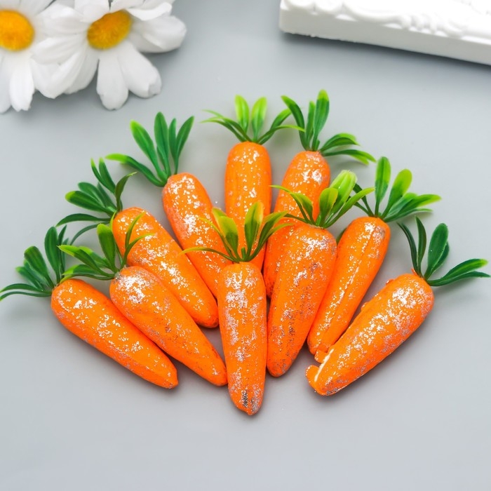 Декор пасхальный "Морковки с серебристыми блёстками" набор 10 шт 4 см