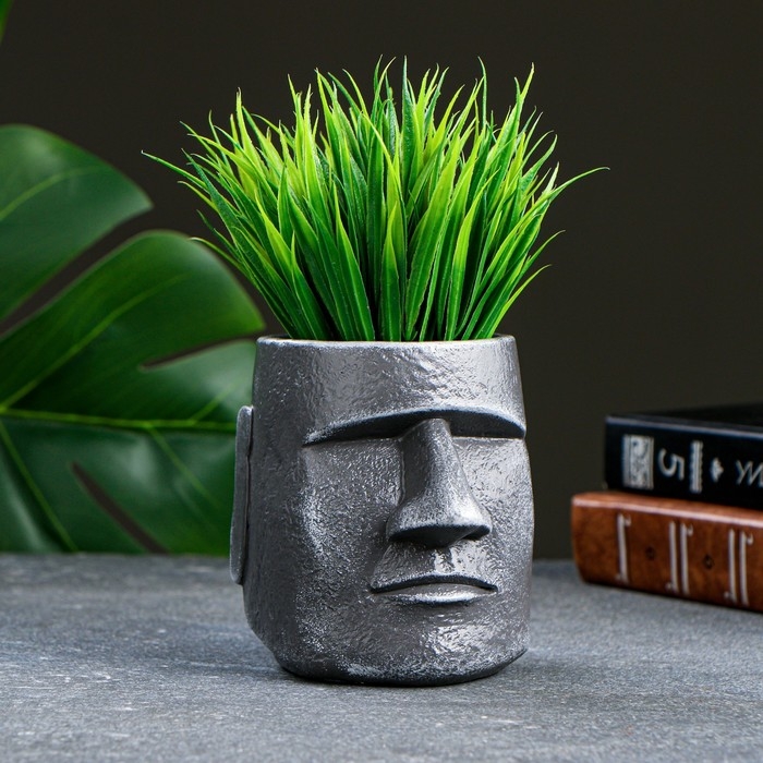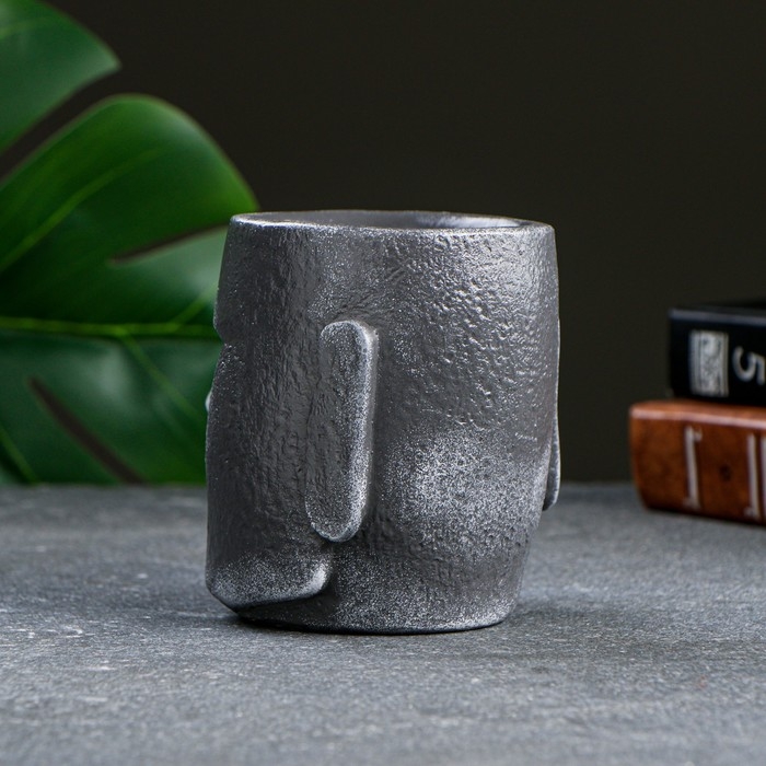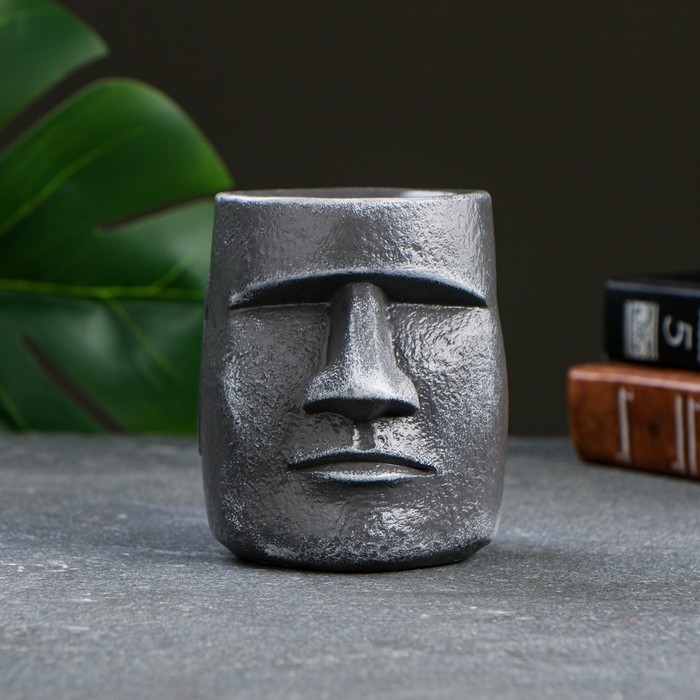 Кашпо - органайзер "Истукан моаи" серый камень, 10см