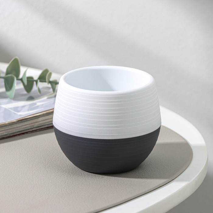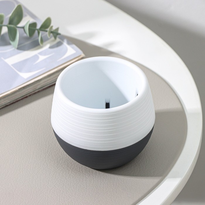Горшок для цветов с поддоном «Япония», 125 мл, d=8 см, h=6,5 см, цвет белый-графитовый