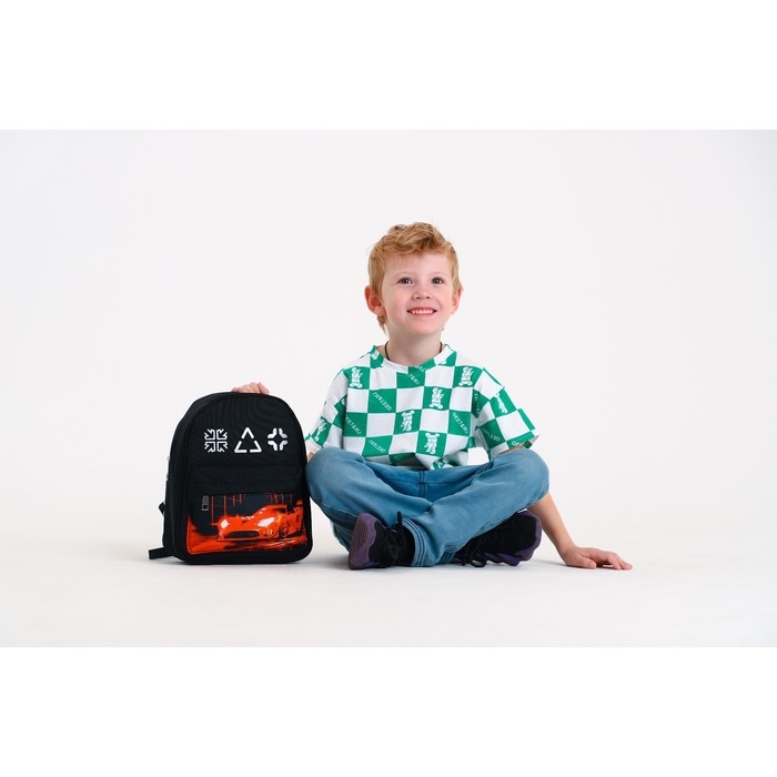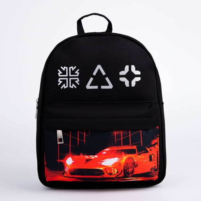 Рюкзак школьный текстильный c карманом «Машинка», светоотр. элементы, 27х23 х 10 см