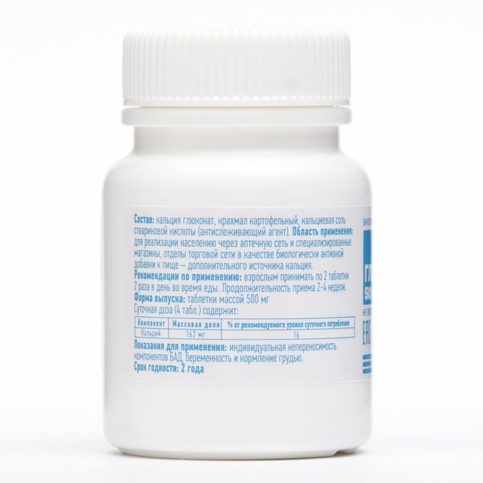 Кальция глюконат Экотекс, 50 таблеток по 0,5 г
