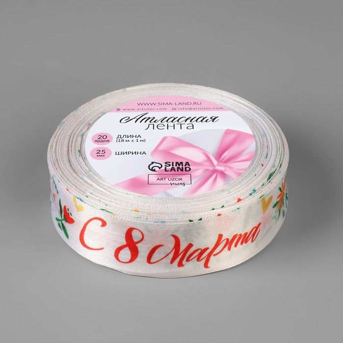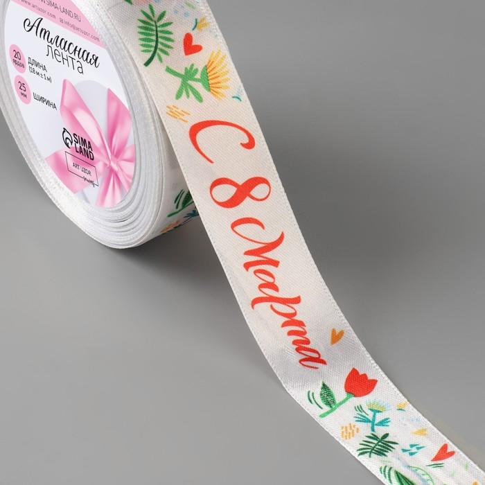 Лента атласная «С 8 Марта», 25 мм × 18 ± 1 м, цвет разноцветный