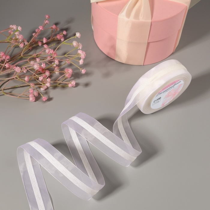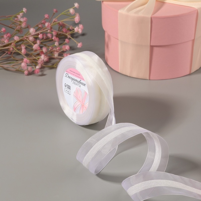 Лента декоративная, капроновая, 25 мм, 9 ± 0,5 м, цвет белый №001