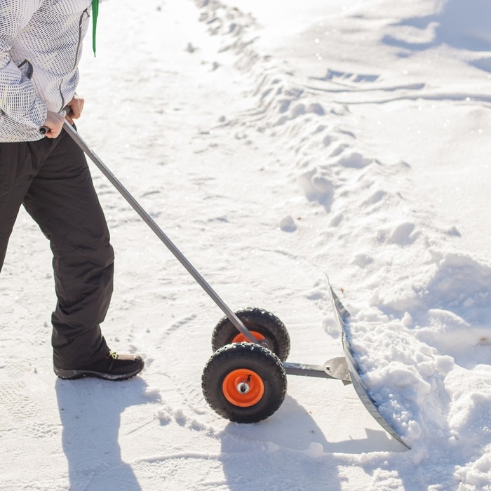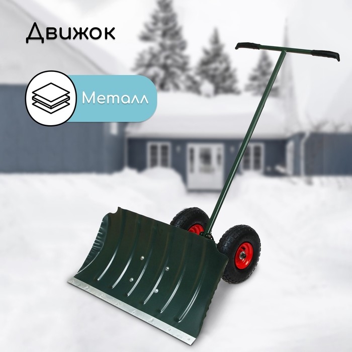 Движок металлический для уборки снега, на колёсах, ковш МИКС 430 × 750 мм, металлическая планка, металлическая ручка цвет МИКС