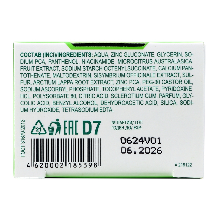 Балансирующий комплекс нового поколения с солью цинка оказывает очищающее, антисептическое, себорегулирующее и матирующее действие.