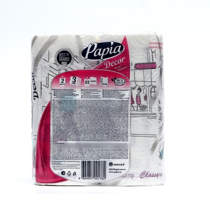 Полотенца бумажные PAPIA DECOR 3слоя 2 рулона