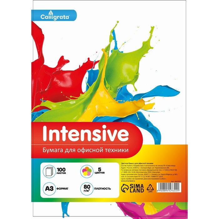 Бумага цветная А3 100л Calligrata Интенсив МИКС 5цв 80г/м2