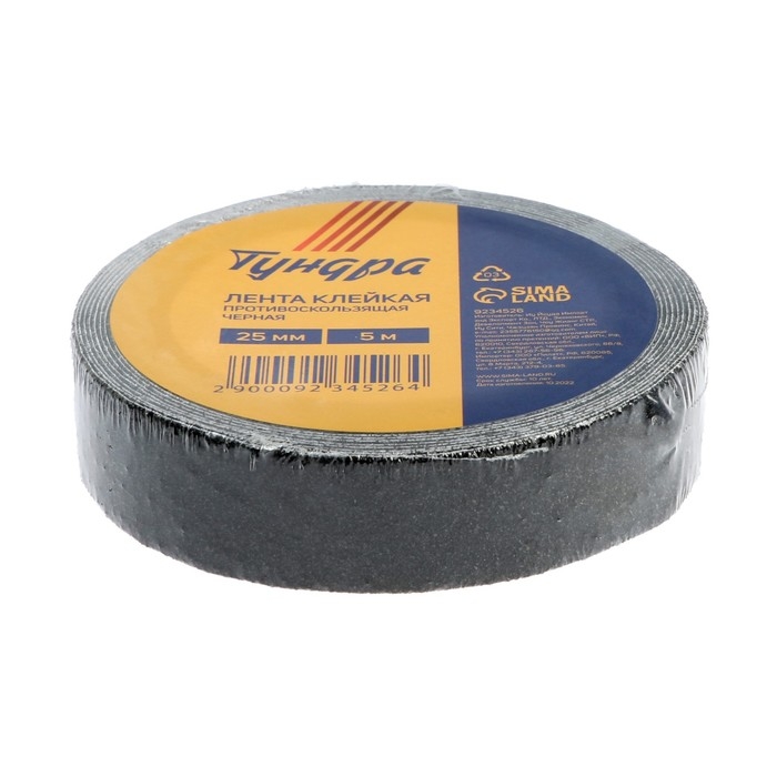 Лента клейкая ТУНДРА, противоскользящая, черная, 25 мм х 5 м