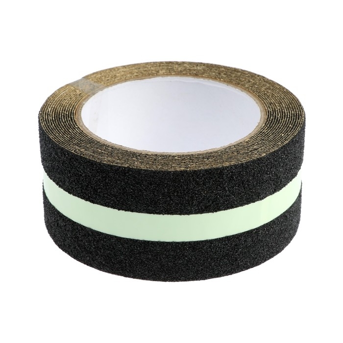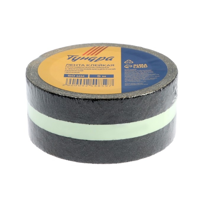Лента клейкая ТУНДРА, противоскользящая, с фотолюминесцентной полосой, черная 50 мм х 5 м