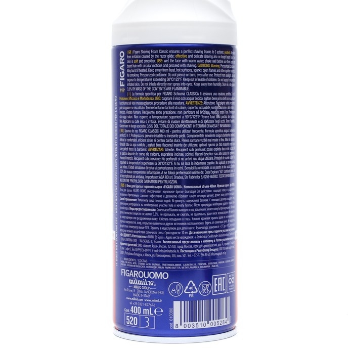 Пена для бритья FIGARO UOMO, для чувствительной кожи, 400 мл