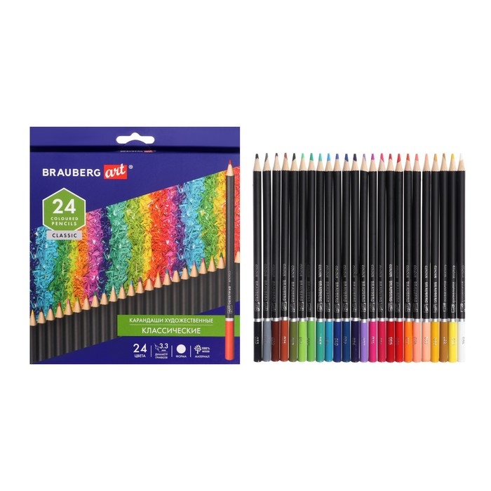 Карандаши художественные цветные BRAUBERG ART CLASSIC, 24 цвета, МЯГКИЙ грифель 3,3 мм, 181537