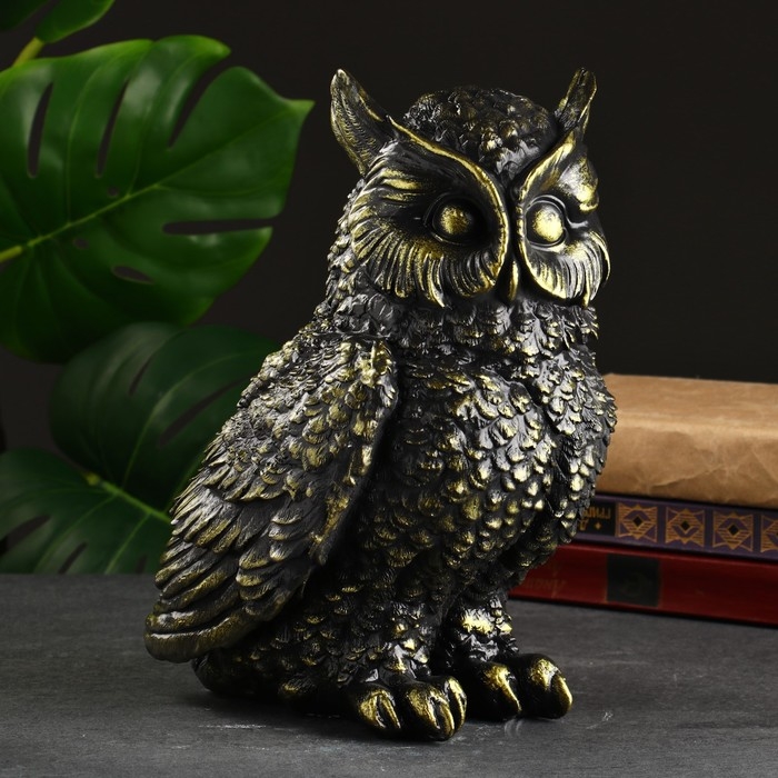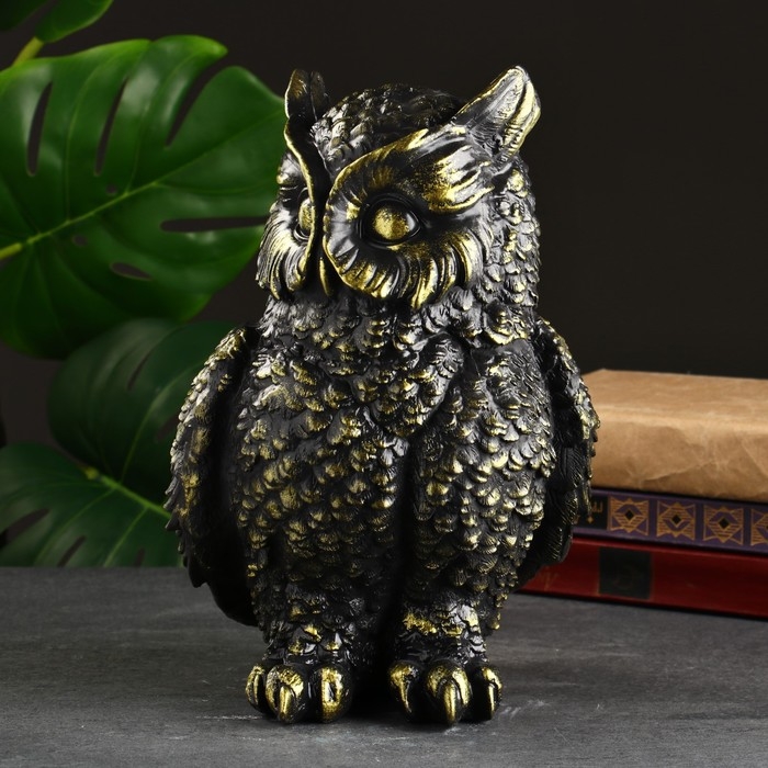 Копилка "Сова большая" черная, золотая, 27 см