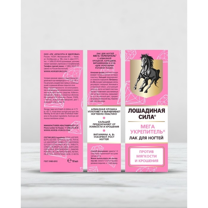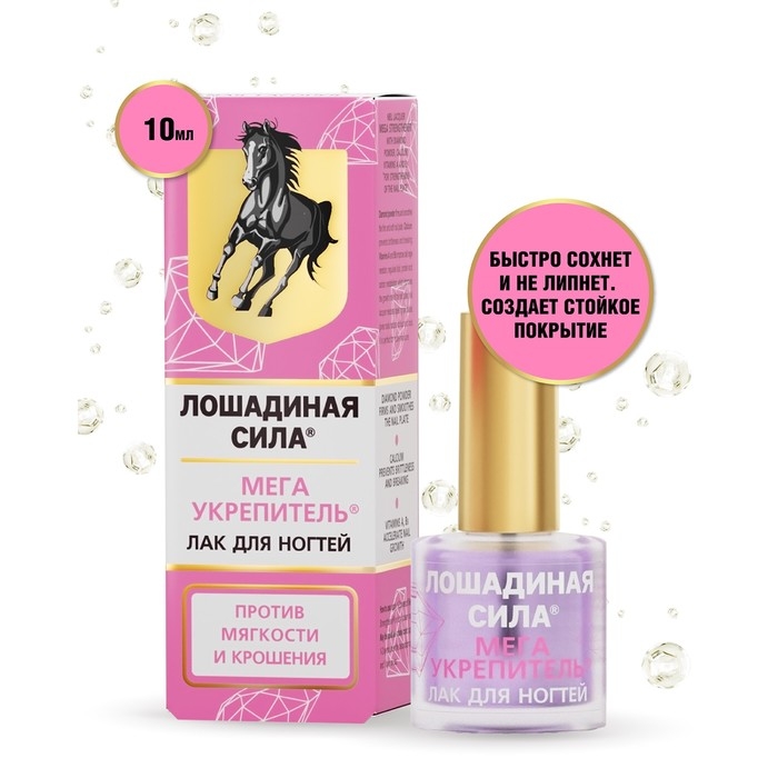 Мега укрепитель для ногтей Лошадиная сила с алмазной крошкой, кальцием, витаминами А и В5, 10 мл