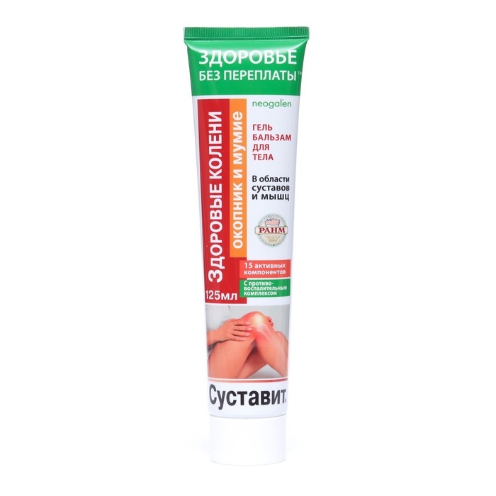 Гель-бальзам для тела "Суставит Окопник Здоровые колени" с мумием, 125 мл