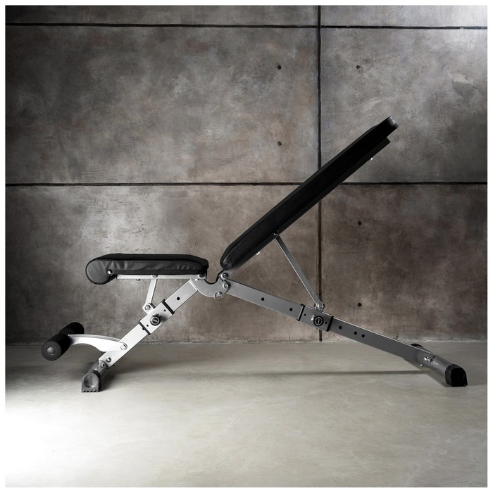 Силовая скамья с упором для ног подойдёт для спортзала и домашнего использования. Имеет отдельные сиденье и спинку с возможностью регулировки при помощи фиксатора на опорах скамьи. Это позволит выполнять упражнения на различные группы мышц и повышать выносливость.