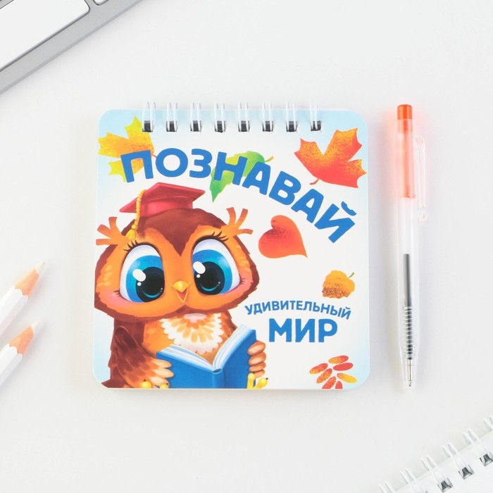 Подарочный набор блокнот 48 листов + ручка «Познавай удивительный мир», 13,5 см х 15 см.