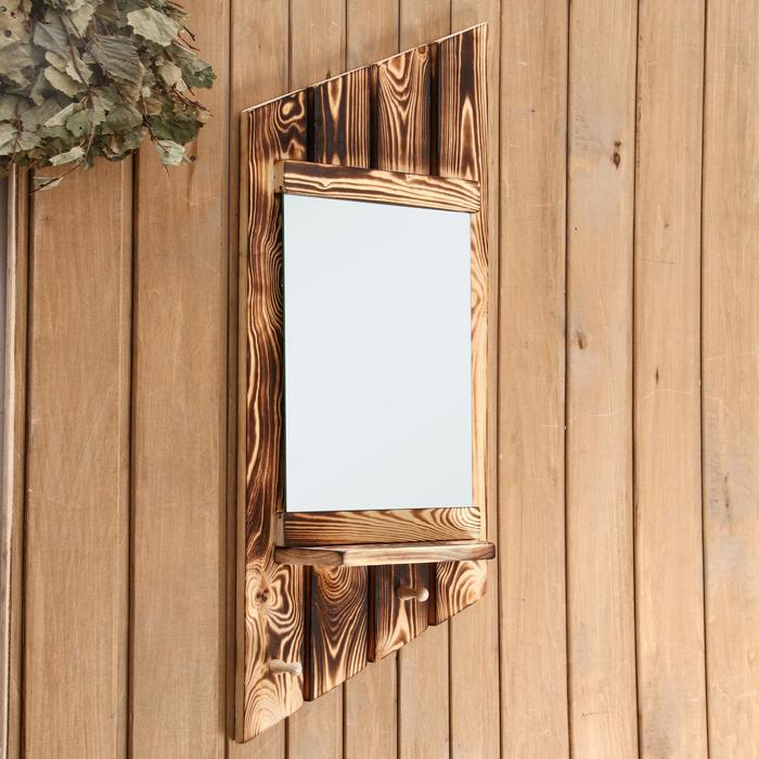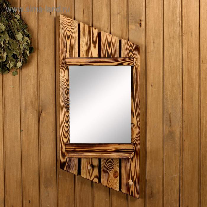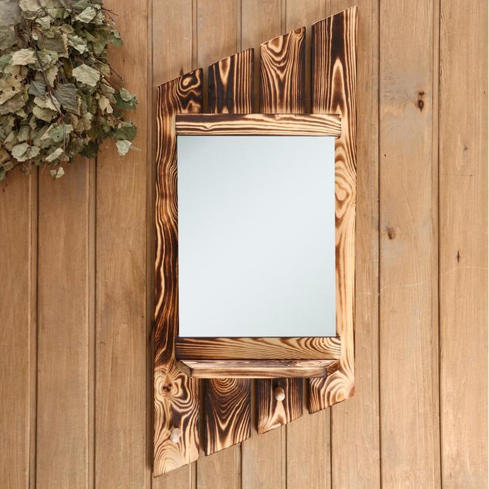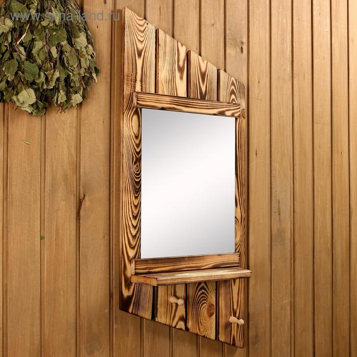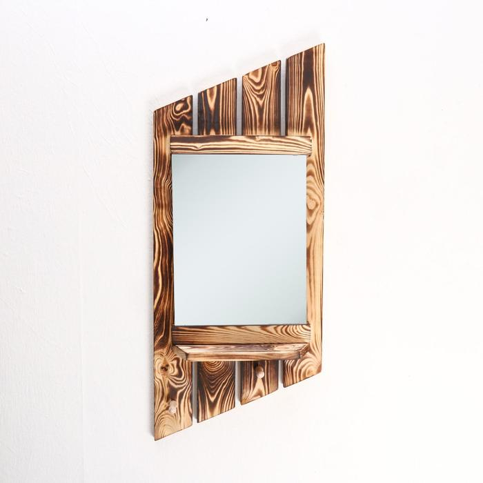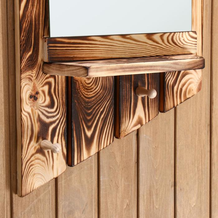 Зеркало "Резное Лесенка" с полкой 3 крючка, 75×40 см