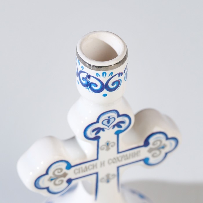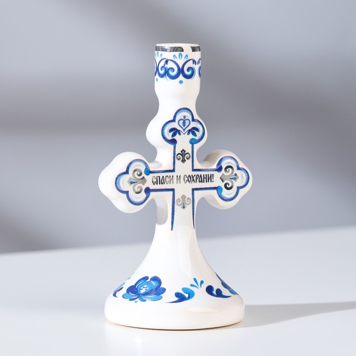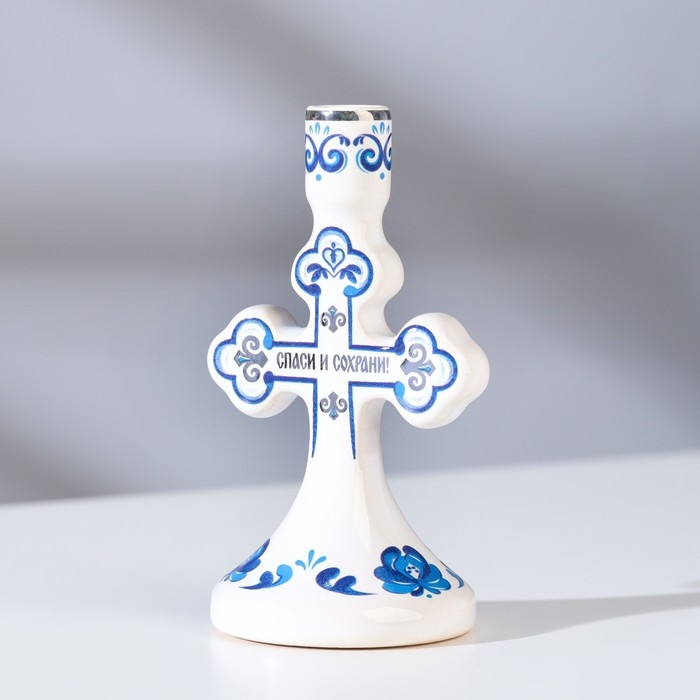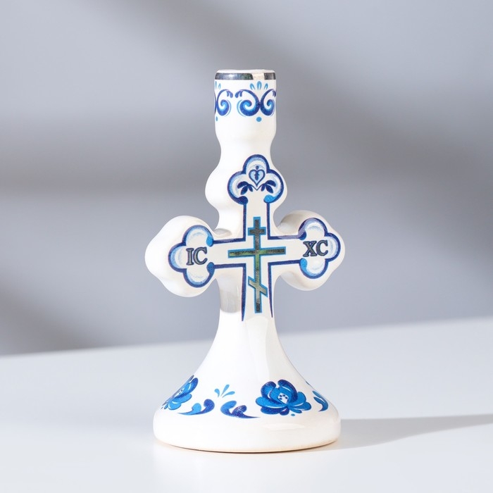 Подсвечник крестик "Гжель", керамика