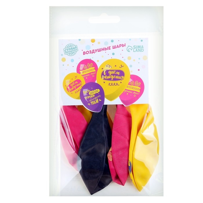 Воздушный шар латексный 12" «С днём рождения, симпатюлька», 5 шт.