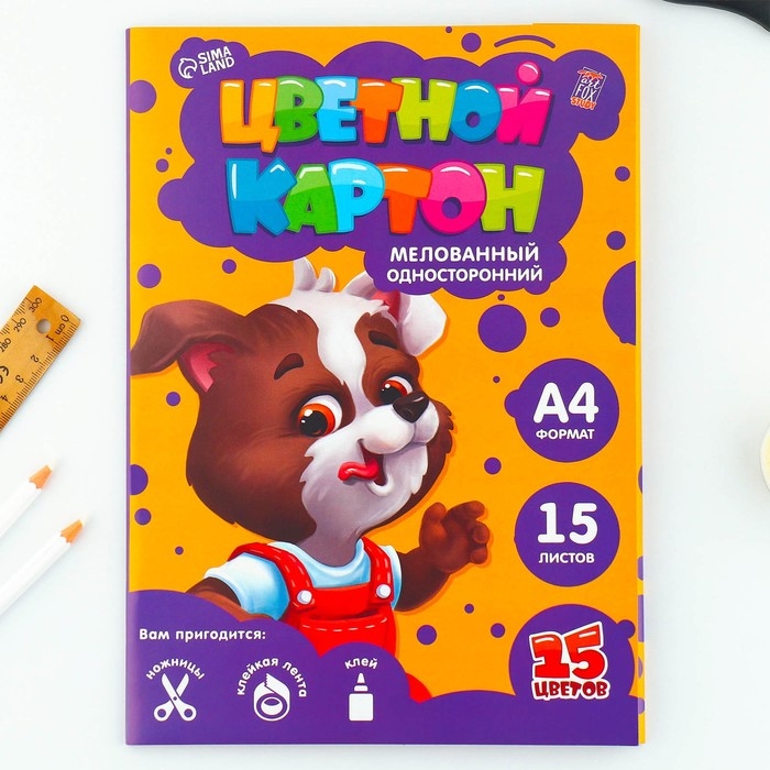 Картон цветной А4 мелованный односторонний 15 листов 15 цветов «1 сентября:Для отличной учёбы»