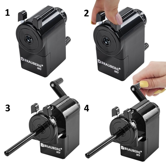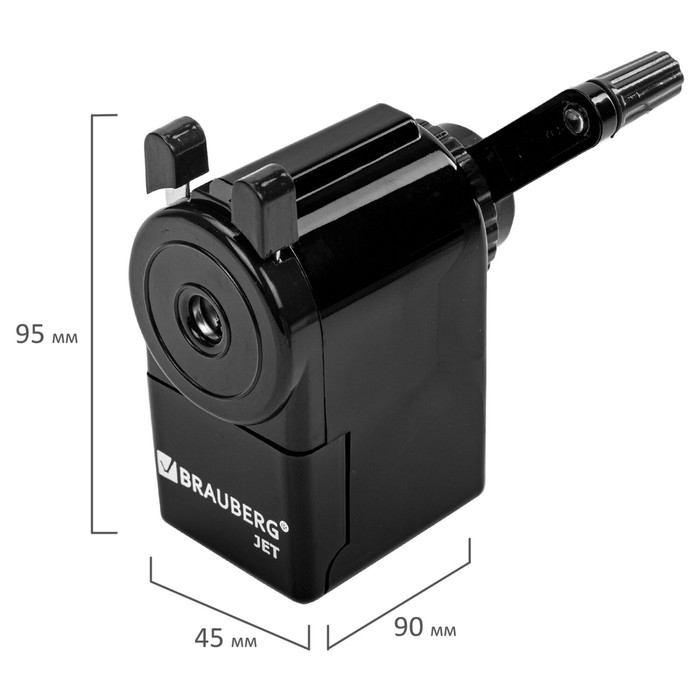 Точилка механическая BRAUBERG "JET", металлический механизм, корпус черный 229566