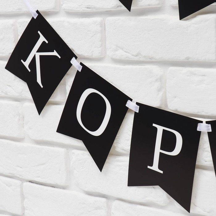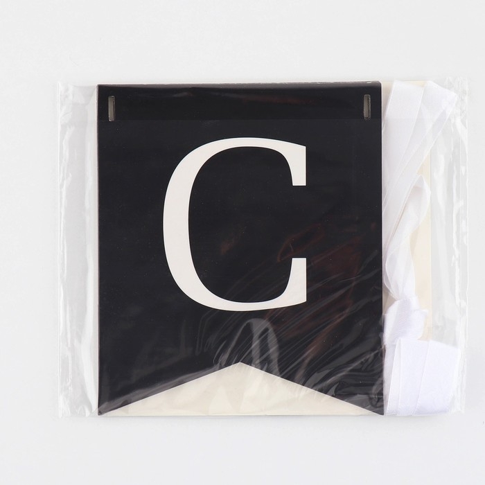 Длина гирлянды - 150 см., плотность картона - 220 гр/кв.м., размер одного флажка - 12 х 14 см.