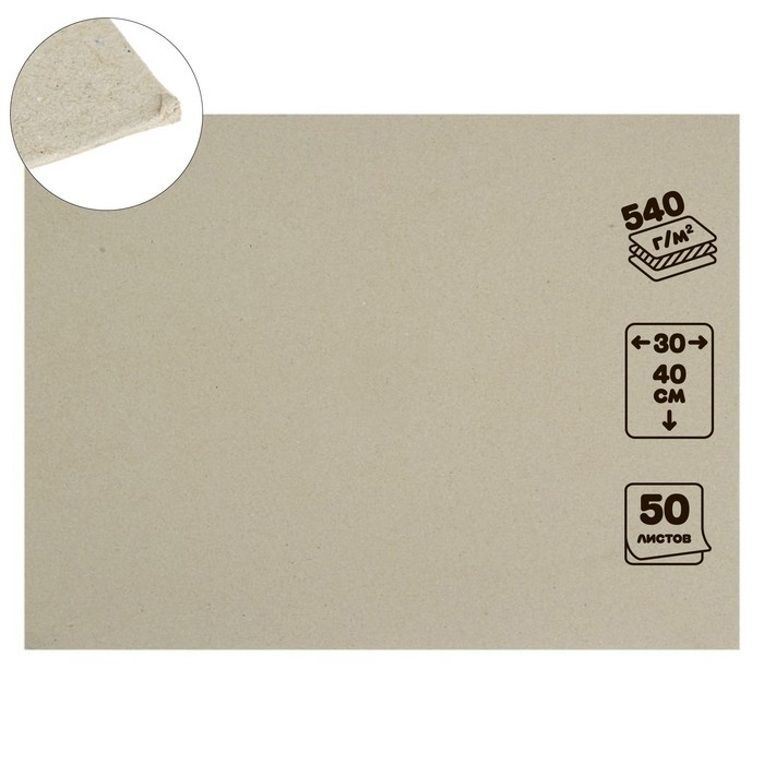 Картон переплётный 0.9 мм, 30 х 40 см, 50 листов, 540 г/м², серый