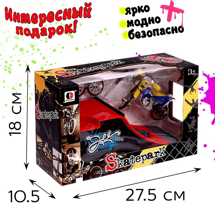 Набор скейт-парк «Мототриал», фингермотобайк с трамплином