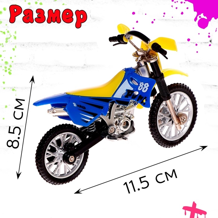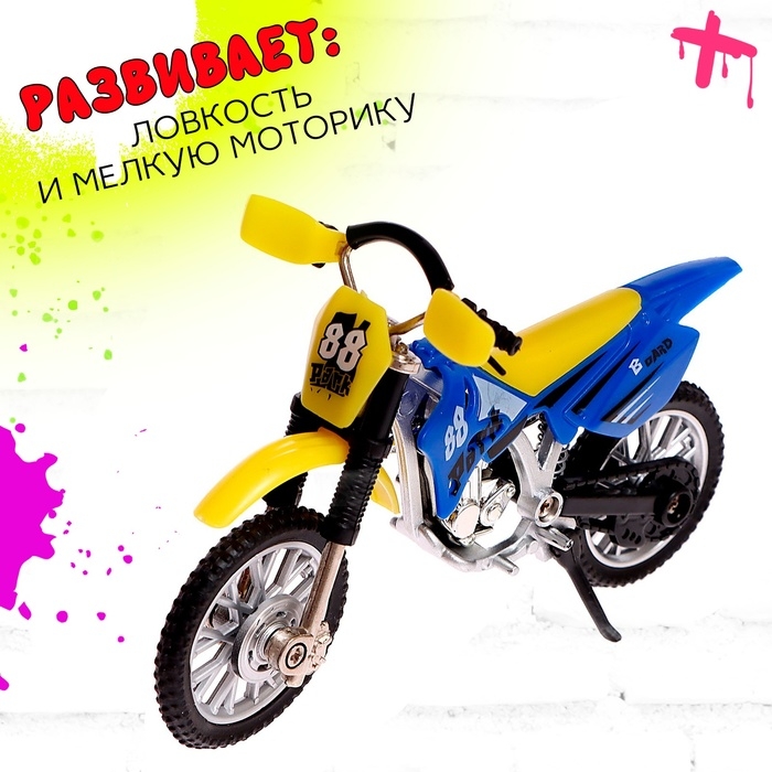 - В комплект входит фингермотобайк — уменьшенная версия кроссового мотоцикла.